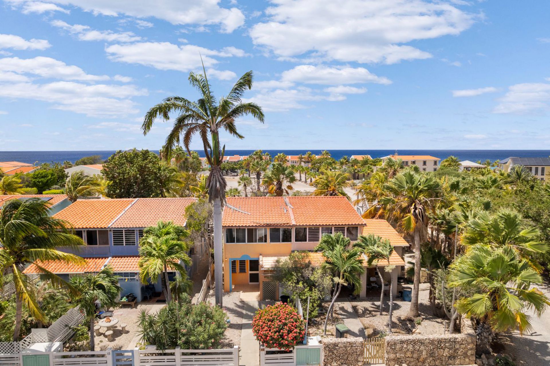 Located in the south of Bonaire, in a beautiful and peaceful setting, this charming townhouse is situated within the popular Lighthouse Beach Resort. The property combines comfort, space, and a relaxed tropical atmosphere, making it the perfect place for both personal use and rental. The townhouse is spread over two floors and features, on the first floor, two spacious bedrooms, each with an en-suite bathroom and a walk-in closet. Both bedrooms also offer stunning views over the resort and surrounding area, providing a special feeling every day.