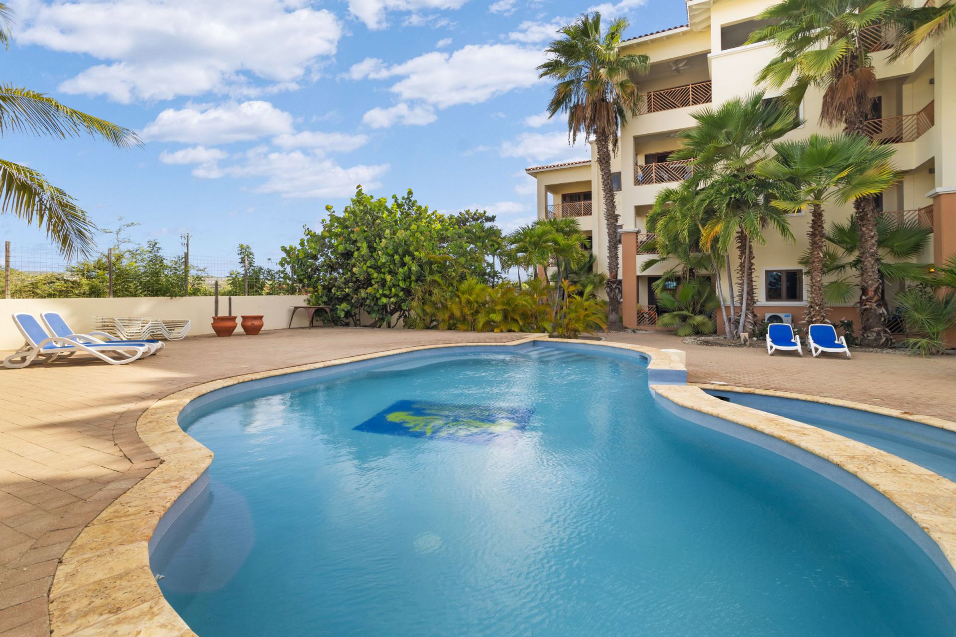 This comfortable apartment, offering no less than 154 m² of living space, overlooks a beautiful green garden with a lovely shared swimming pool. From the generous balcony, you can enjoy impressive sunsets and a scenic view towards the Caribbean Sea and Klein Bonaire.