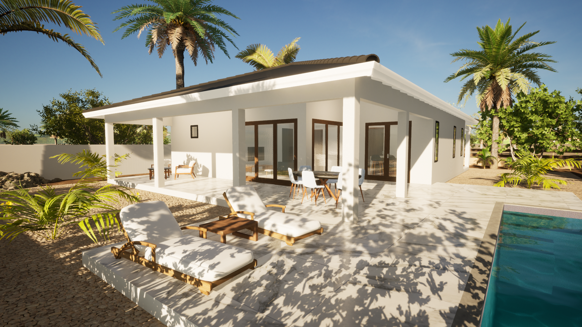 This model home can be built in the district of Suikerpalm Bonaire. A thriving neighborhood, surrounded by beautiful open landscapes. Only a 2 minute drive to the nearest beach 'Bachelor Beach' to the west this allotmentplan is located in between the most beautiful coastal areas of Bonaire. The center of Kralendijk is only a 10-minute drive away. Not yet the owner of a plot in Suikerpalm? Click for all available Sugar Palm lots.