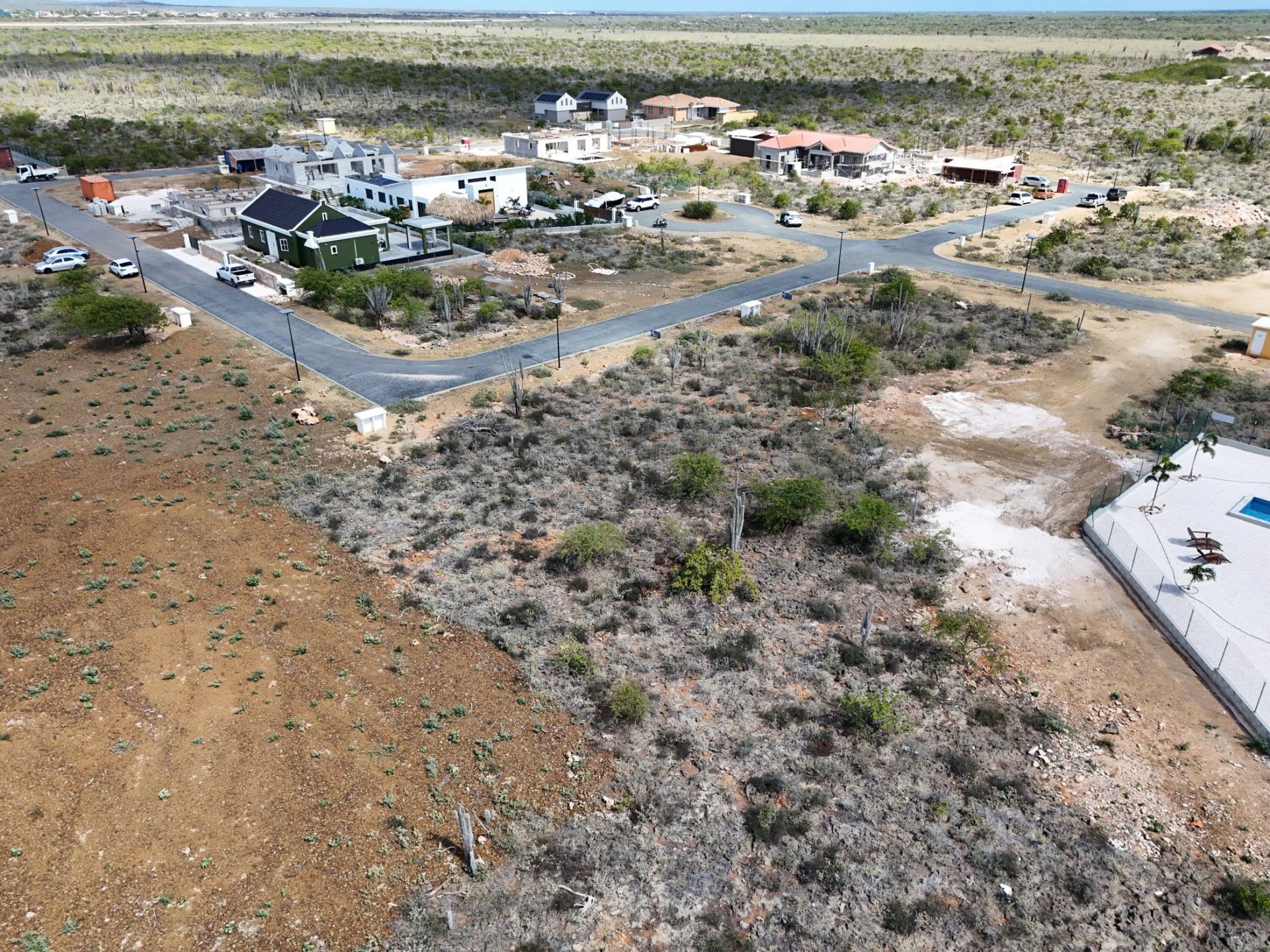 De bereikbaarheid is uitstekend. Het Sorobon-gebied ligt op circa 5 minuten rijden richting het oosten en Bachelor Beach bereikt u al binnen 2 minuten richting het westen. Het centrum van Kralendijk bevindt zich op ongeveer 10 minuten rijafstand. De verkaveling Suikerpalm is inmiddels volledig ontwikkeld. De wegen zijn aangelegd en verhard en de nutsvoorzieningen, zoals water en elektriciteit, zijn ondergronds aanwezig en beschikbaar op de kavel. Hierdoor kunt u direct starten met de bouw van uw woning, zonder afhankelijk te zijn van toekomstige infrastructuurwerken.